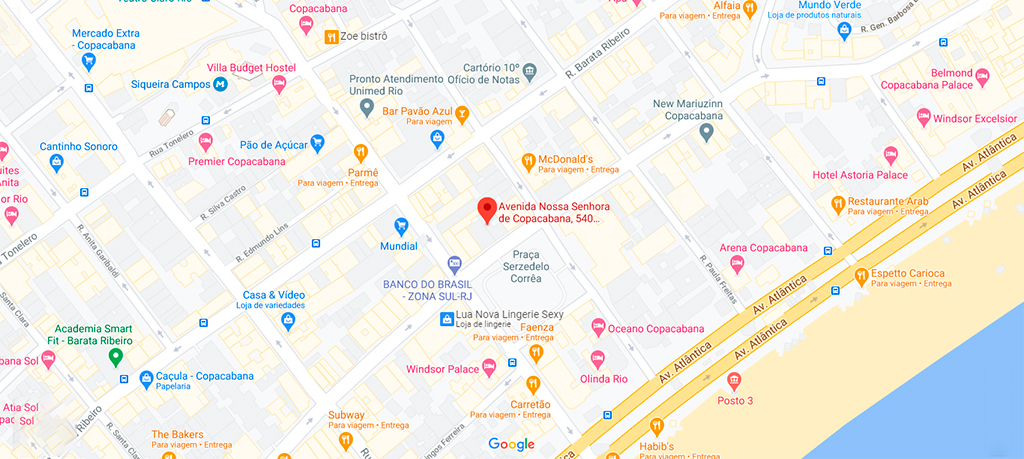 • Avenida Nossa Senhora de Copacabana, 540, Sala 1002, Rio de Janeiro - RJ
